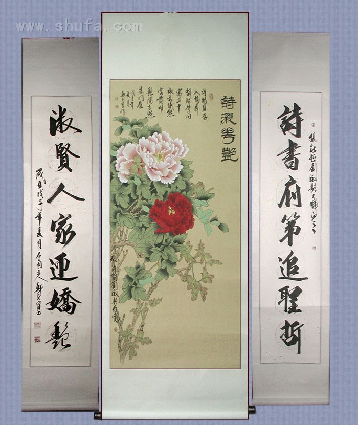这是友人赠送张诗哲刘淑想艳夫妇中堂书画