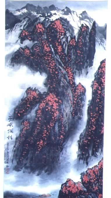 沈杰松创作的中国山水画《巫峡枫林》,刊载于《解放军报》售价:80000