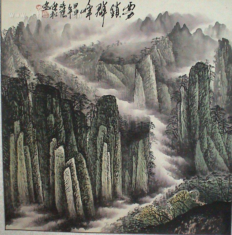 沈杰松创作的中国山水画《雾锁群峰》已售出