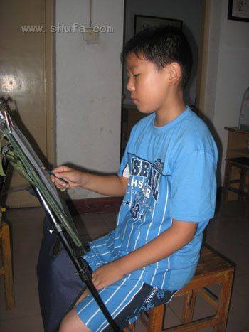 素描班张钊同学在现场作画.
