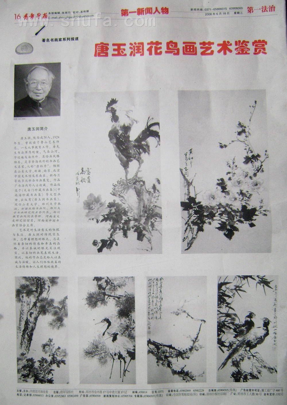 唐玉润,陕西咸阳人,1924年生。曾就读于鲁山艺术师范,一生从事教育工作。先生书法浑厚刚健,气吞山河,字迹遍及海内外。其绘画风格独具,是享誉海内外的书画艺术名家,人称“唐牡丹”。相继在山东大学、新疆、南京、北京中国美术馆及东南亚新西兰等国内外多次举办书画展览,作品广为海内外人士收藏。作品收录于《天安门珍藏书画集》、《中南海珍藏书画集》等大型画册,出版有《唐玉润书画集》。现任山东大学、郑州大学教授,新疆丝路书画院、郑州大学书画研究院名誉院长,郑州教育画院院长等职。河南省文史研究馆馆员,河南省中国书画家协会主席。
