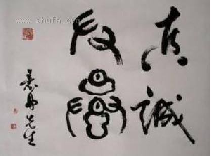 在当今的商品时代里,人们更需要真诚友爱。 这幅作品初次尝试将行书与篆书相结合,以示不同世代的和谐。作于2004年。 售价:1200元。