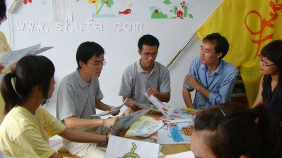 学院师生和庭艺少儿培训中心老师集体批阅孩子作业
