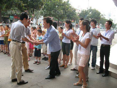 团总支书记朱国朋、党总支组织委员高正老师一行受到庭艺少儿培训中心老师和孩子们的热烈欢迎
