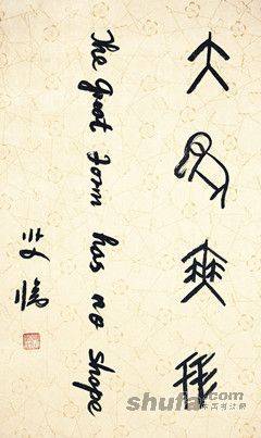 双语书法,中国第一家。 大象无形,语出《老子》
