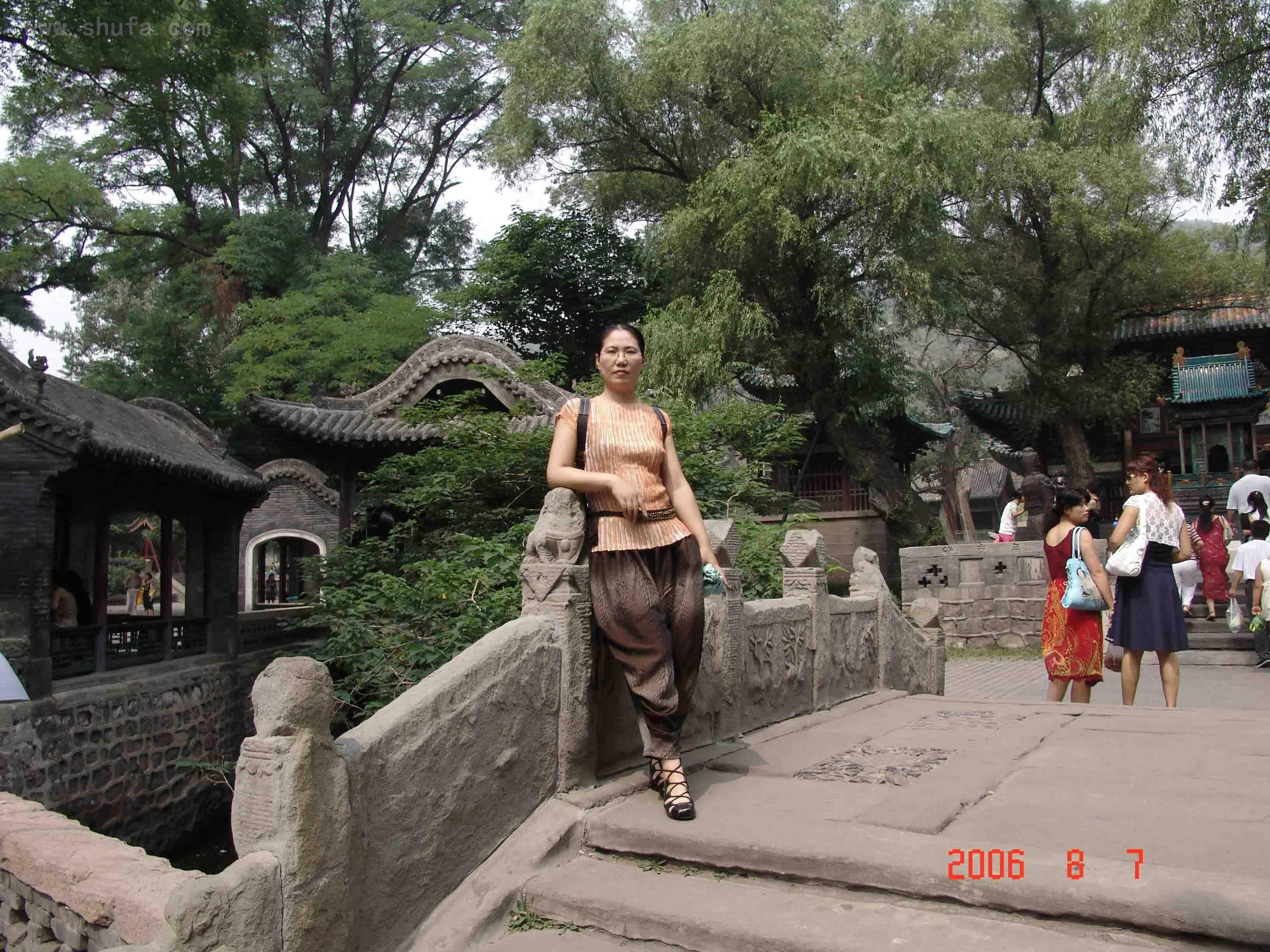 戚散花于山西晋祠留影