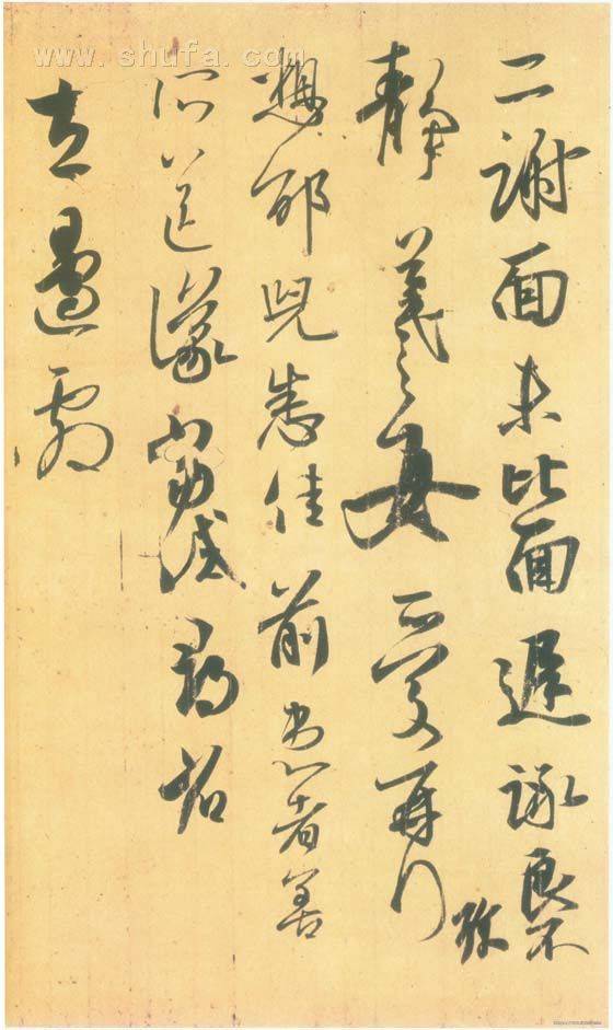 《二谢帖》和《得示帖》、《丧乱帖》连成一纸。纵28.7厘米。5行,行草书。 释文:二谢面未? 比面迟承良不静。羲之女爱再拜,想邰儿悉佳。前患者善。