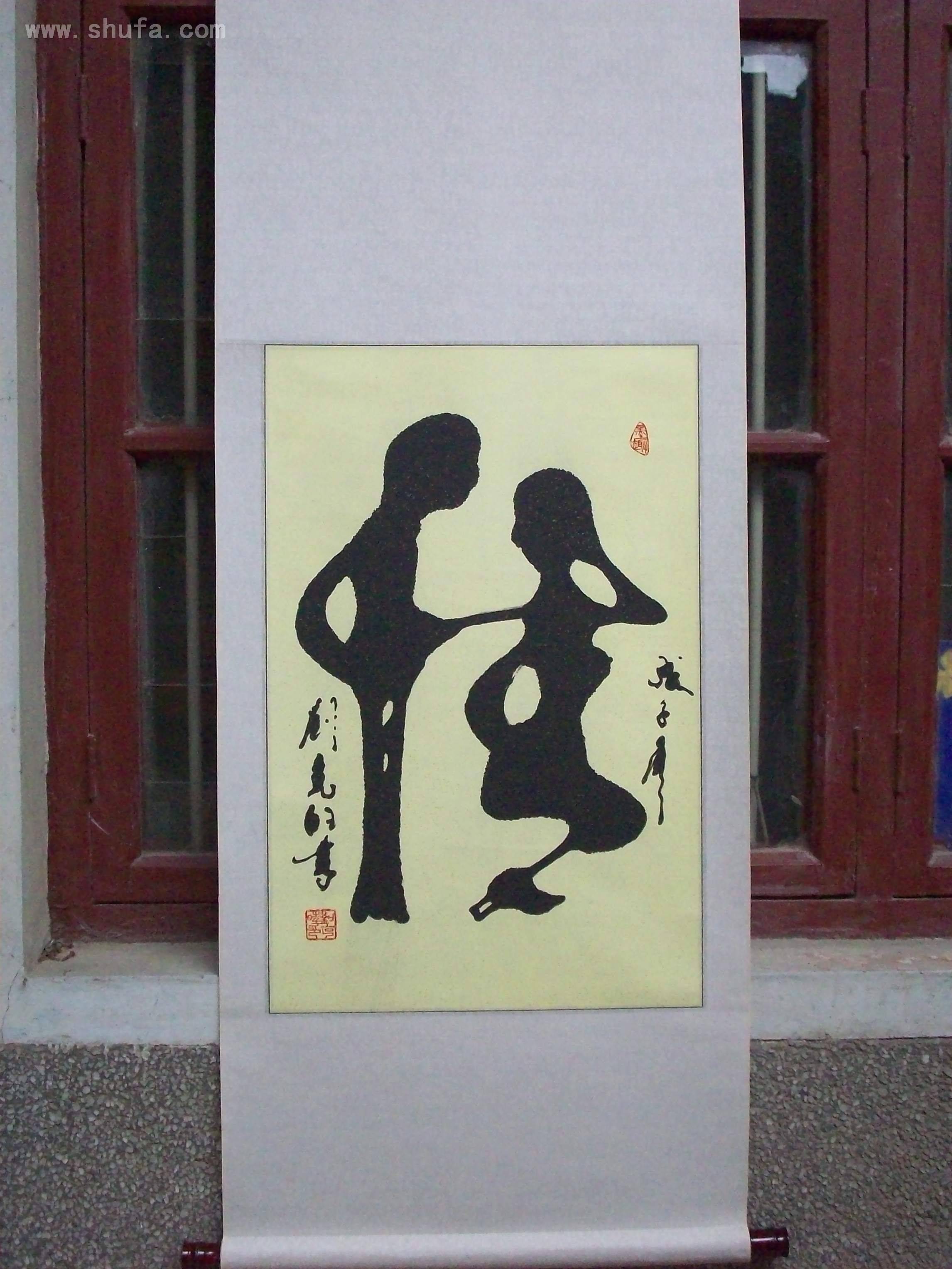 一男一女根据易经八卦乾坤定位,字中有画,画中有字,字画同源,堪称经典。