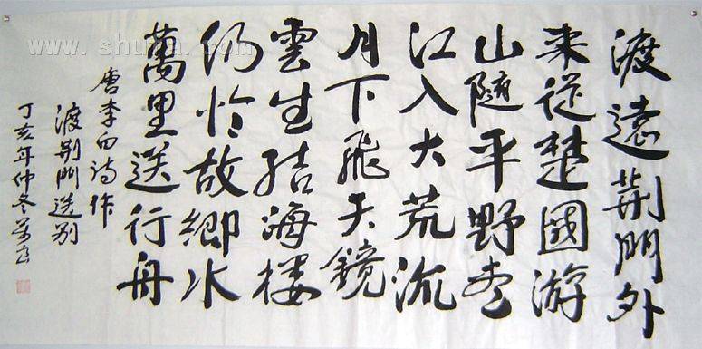 李白诗 渡远荆门外 来从楚国游 山随平野尽 江入大荒流 月下飞天镜 云生结海楼 仍怜故乡水 万里送行舟