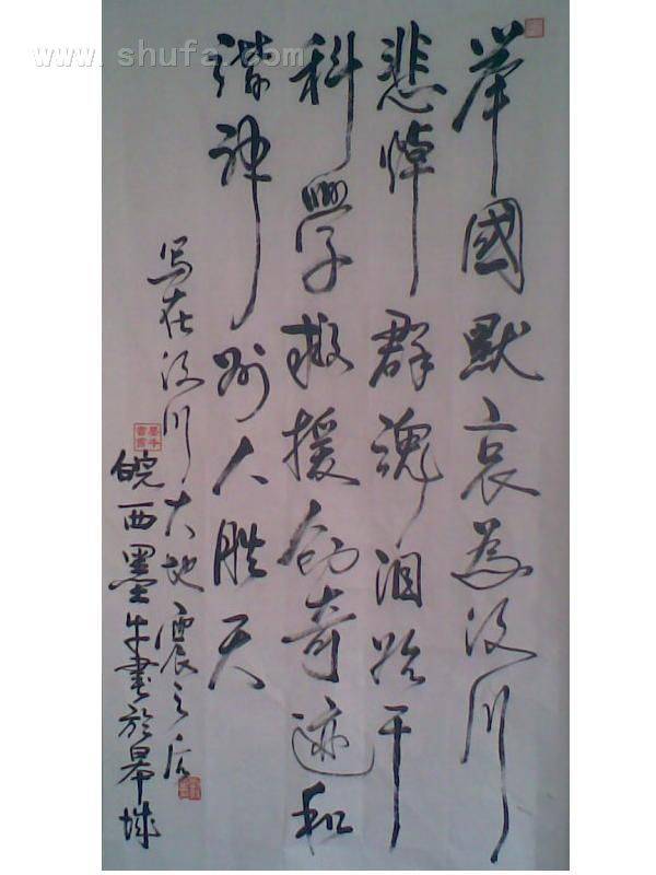 5。12汶川大地震给国人带来无限感慨,大爱无疆得以充分体现!本人作为一名普通中共党员,悲痛之余,也有几分欣慰,一方有难,八方支援!党和政府采取得力措施,科学救援,充分体现党中央对人民的关怀!为此赋诗一首,并书之。