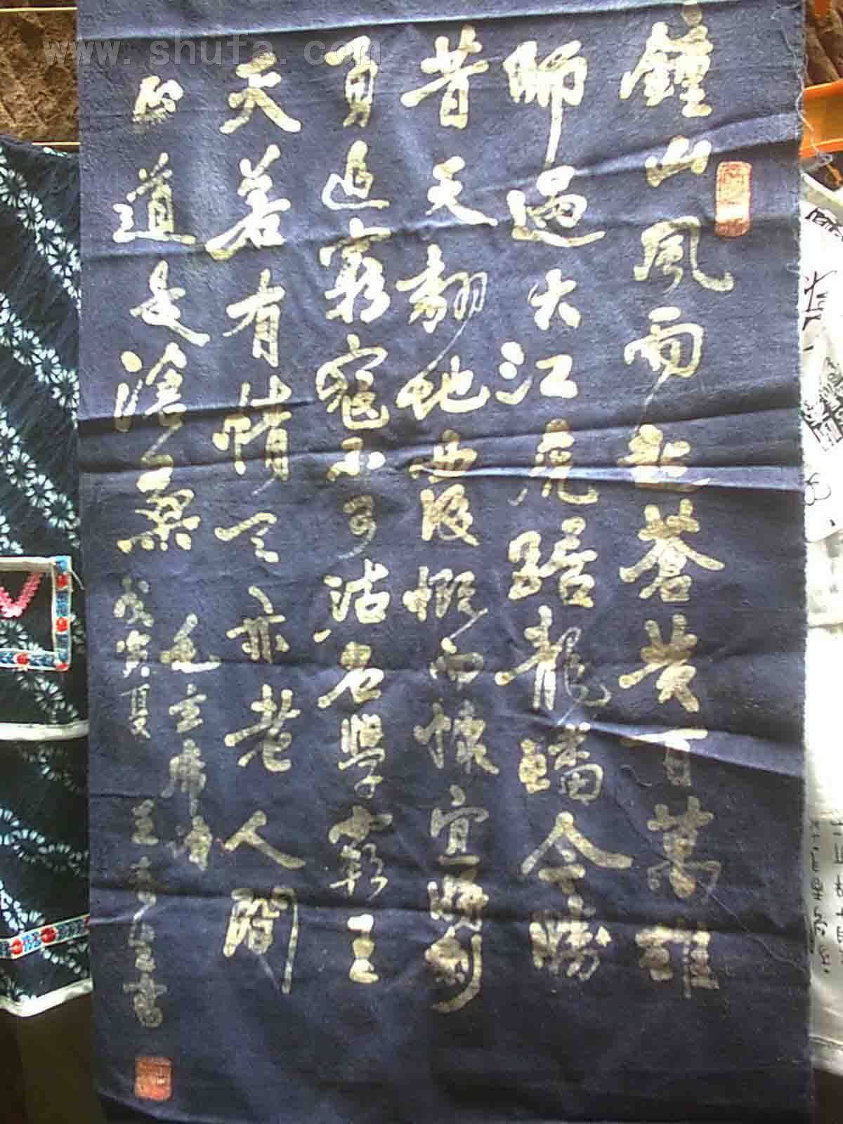 行书毛主席诗,被做成蜡染。