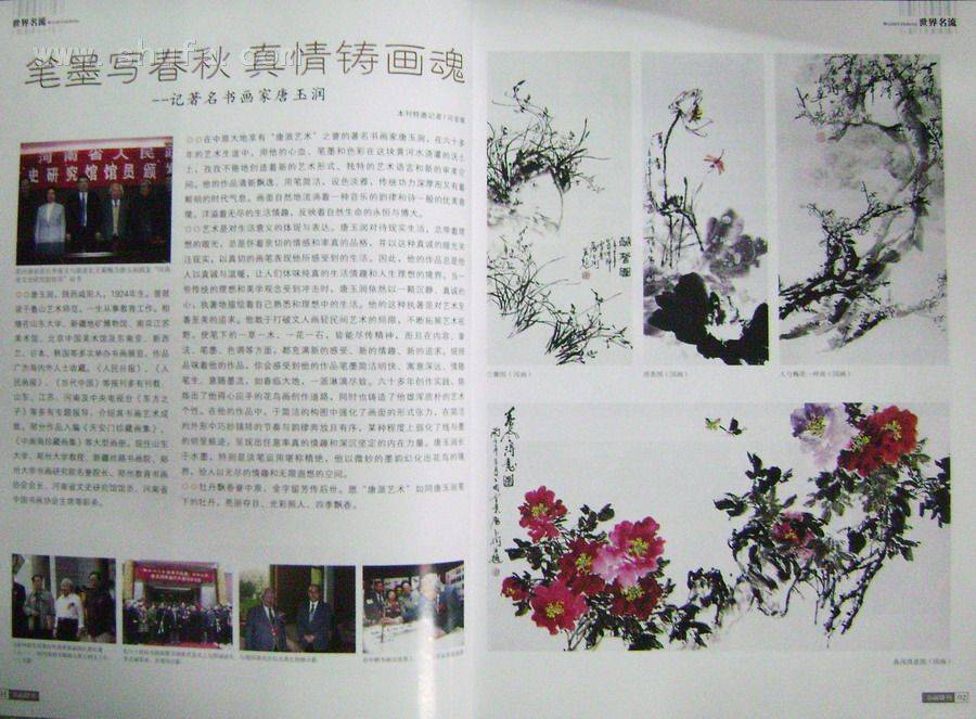 唐玉润。陕西咸阳人,1924年生。曾就读于鲁山艺术师范,一生从事教育工作。先生书法浑厚刚健,气吞山河,字迹遍及海内外。其绘画风格独具,是享誉海内外的书画艺术名家,人称“唐牡丹”。相继在山东大学、新疆、南京、北京中国美术馆及东南亚新西兰等国内外多次举办书画展览,作品广为海内外人士收藏。作品收录于《天安门珍藏书画集》、《中南海珍藏书画集》等大型画册,出版有《唐玉润书画集》。现任山东大学、郑州大学教授,新疆丝路书画院、郑州大学书画研究院名誉院长,郑州教育画院院长等职。河南省文史研究馆馆员,河南省中国书画家协会主席。 艺术是对生活意义的体现与表达。唐玉润对待现实生活,总带着理想的眼光,总是怀着亲切的情感和率真的品格,并以这种真诚的眼光关注现实,以真切的画笔表现他所感受到的生活。因此,他的作品总是给人以真诚与温暖,让人们体味纯真的生活情趣和人生理想的境界。当一些传统的理想和美学观念受到冲击时,唐玉润依然以一颗沉静、真诚的心,执著地描绘着自己熟悉和理想中的生活。