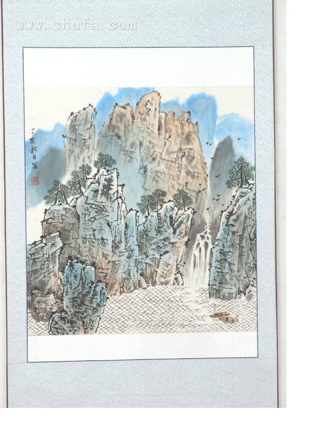 国画<<山水>>创作于2007年10月,画上落穷款:丁亥秋日写