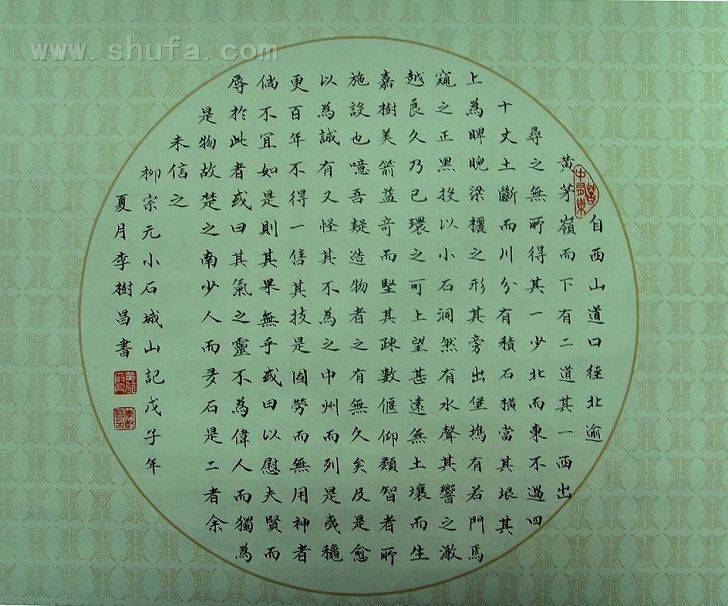 此作品,书写与2008年7月,用纸团扇扇面,用笔善琏笔厂选毫圆健。