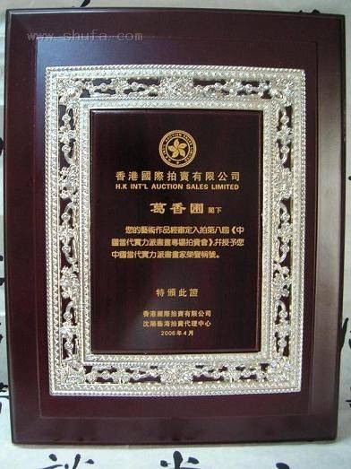 葛香圃获奖证书