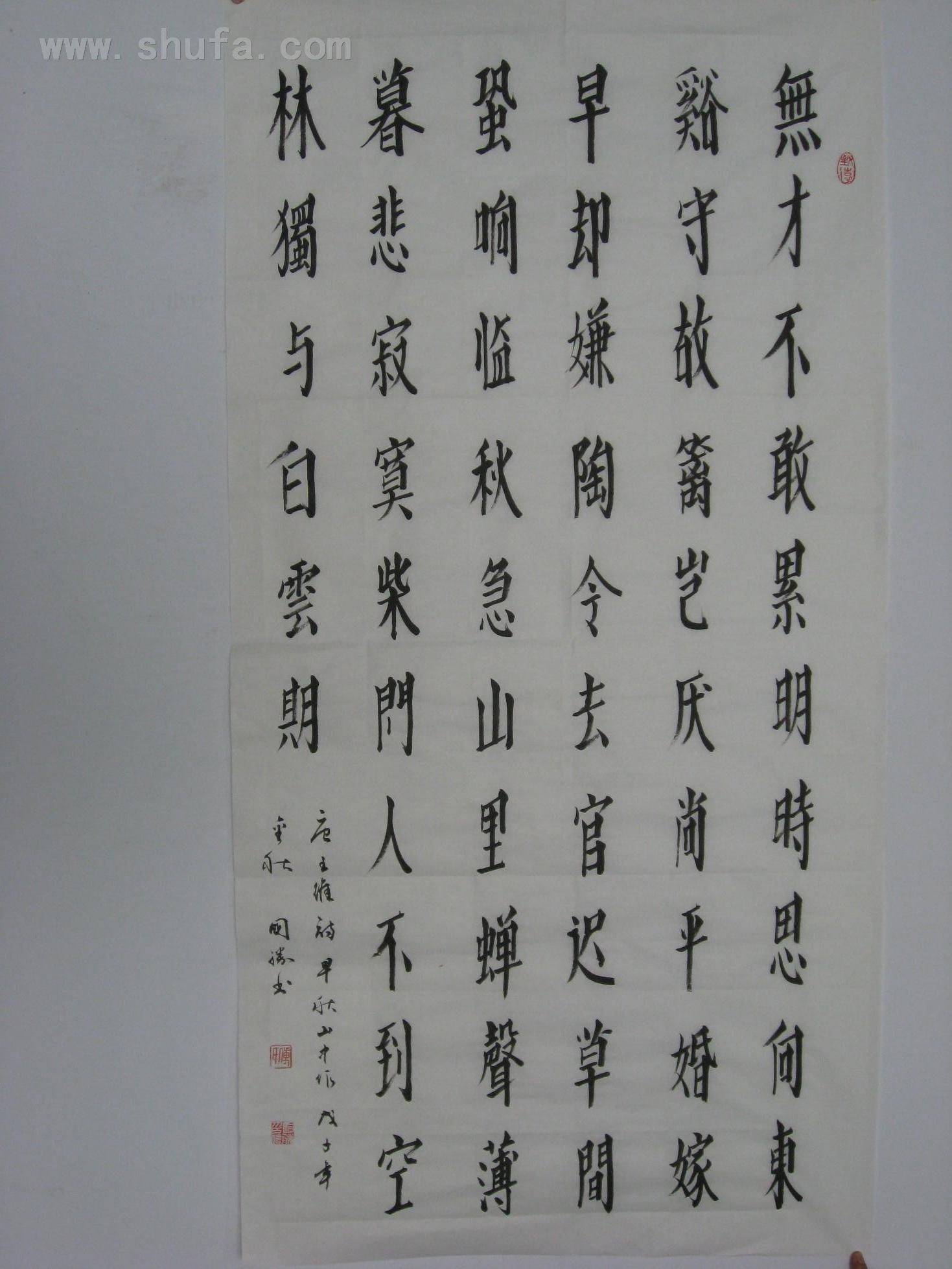 傅国胜用斜体字写唐朝诗人王维的《早秋山中作》