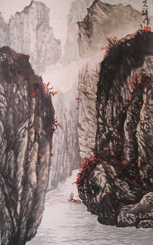 这是一幅表现三峡秋天的作品,用笔娴熟,空间变化丰富,笔墨神韵皆具。