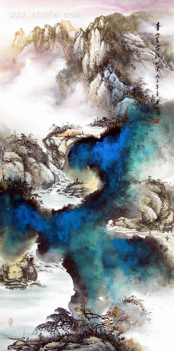 作品墨酣笔畅、富于变化、润泽大气,极具个性。探得大自然之灵性,写出天地之浩然,尽情、尽理、尽意、尽兴,融会众法,博采中西。用笔、用墨、用色、用水,挥之洒洒,流畅自如,气韵生动。并竭力创作心中的诗意画。却知画活山水的自然景致,需心性之真情流露。在滋润与秀美的水墨世界里,努力做到“搜尽奇峰打草稿”。他山水画里的山峦迭嶂、瀑布飞泉、山路樵夫、耕牛梯田,是江南的“风景旧曾谙”,却仍见空气湿润、云雾苍茫,表现出“天青、水静、人悠远”的境界。