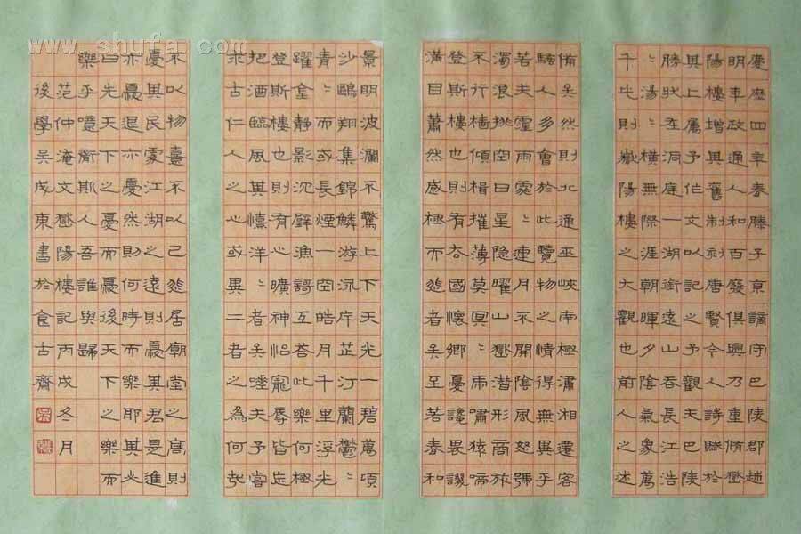 隶书岳阳楼记四联屏