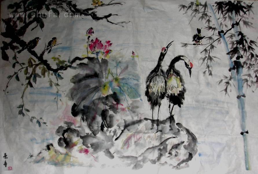 双鹤五鸟仙境