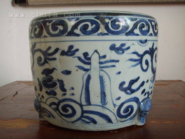明代崇祯青花三足香炉