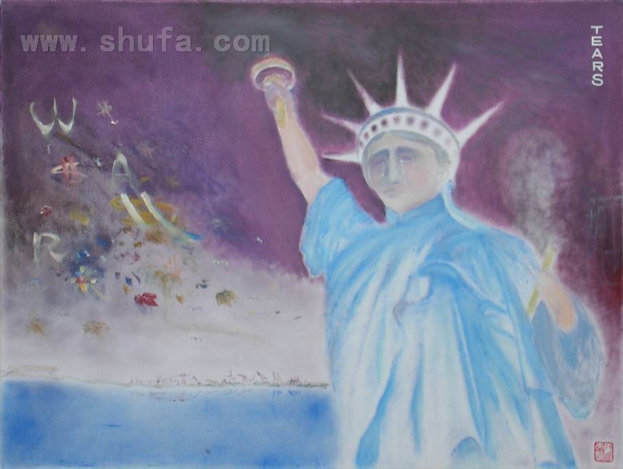 自由女神的眼泪 美国自2000年以来,不断发起世界争端,使美国的经济逐渐走向衰退,终于导致2008年9月的金融危机。自由女神也流下了伤感的眼泪。 马天麟博士作于2008年10月1日。 售价:10000元。