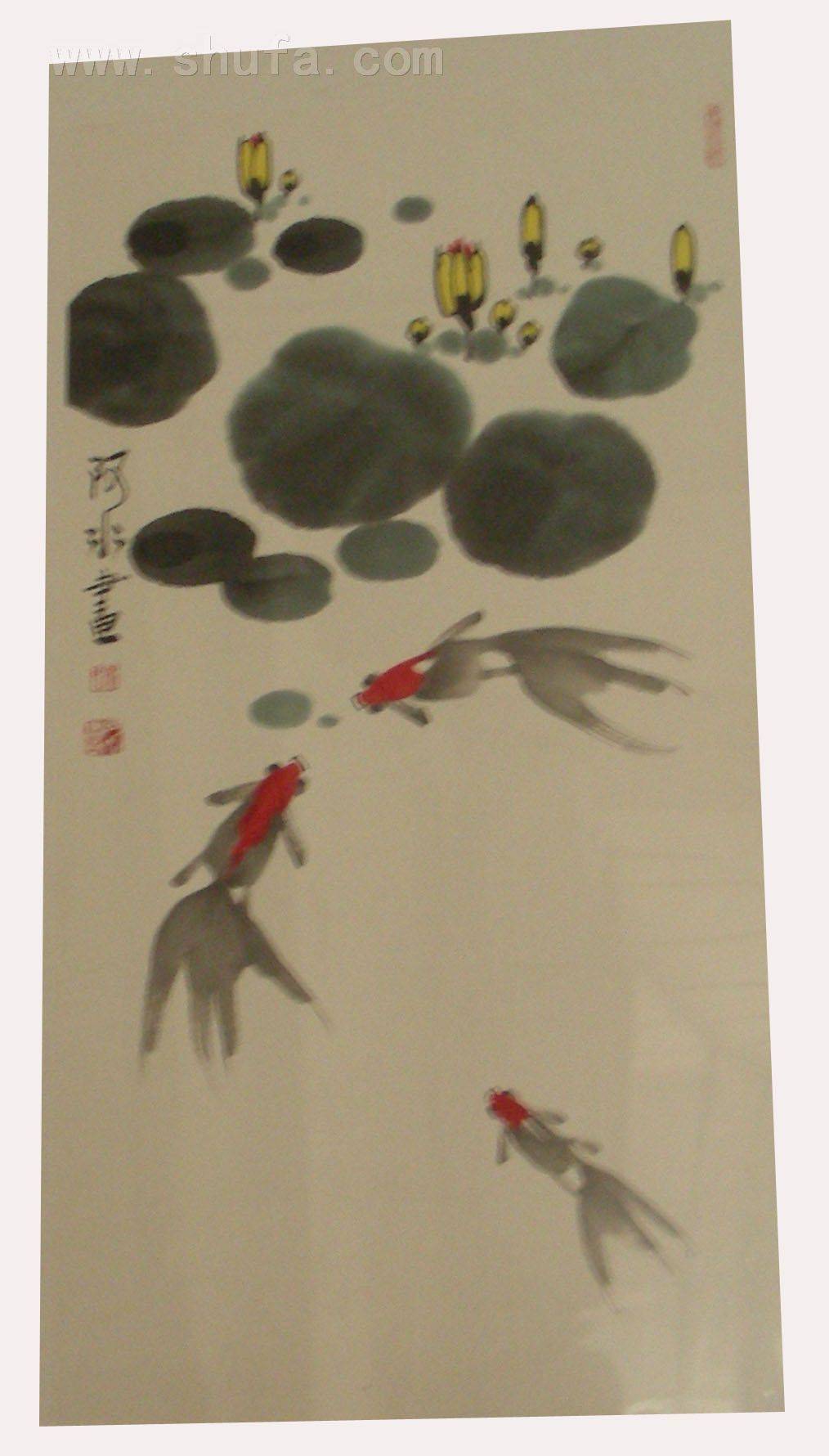 乍看,娴静淡雅;细看时,妙趣横生。金鱼栩栩如生,惹人怜爱!