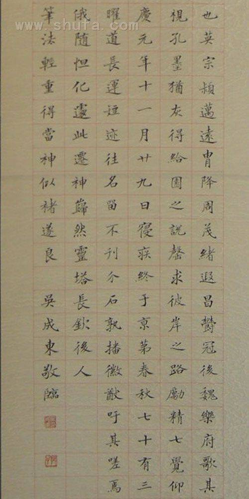 2005年书临小楷《大唐王居士砖塔铭》。因字小图片不好处理,展示的是局部。敬请各位网友指正!
