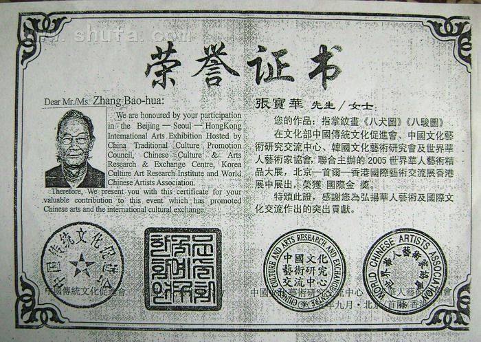 张宝华,宇郑人,号玄真子。1942年生于河南新郑。湖南株洲硬质合金集团有限公司退休干部。现为世界华人艺术家协会会员、中国国际书画院终身教授、世界特艺绘画委员会委员、中国手指画研究会理事、中国北方书画院特别顾问、湖南省漫画家协会会员。 1989年张宝华创造了以指掌纹绘画的新技艺,丰富了我国的画种。指掌纹绘画简洁明快,淡雅清朴、质感强烈,即具有中国画的神韵又具有西洋画的结构特征,堪称中国一绝。他的指掌纹画一面世,就深受艺术界的关注和世人的喜爱。在海内外新闻媒体中引起轰动,竞相报道宣传。宝华先生曾应邀参加中央电视台“综艺大观”和湖南电视台“快乐大本营”的现场表演。 他的作品除被许多国家首脑政要、各界名人收藏外,还被新华书画院等许多著名馆所收藏,还有不少作品在亚、非、欧、美、澳五大洲许多国家辗转展览。 他曾出访亚、非、欧、美洲的20余个国家进行跨国的文化交流。他的事迹和作品入编了《中国大百科专家人物集》、《中国当代文艺家辞典》、《中国艺术界名人录》、《中国书画收藏宝典》和《世界名人录》等大型典籍。