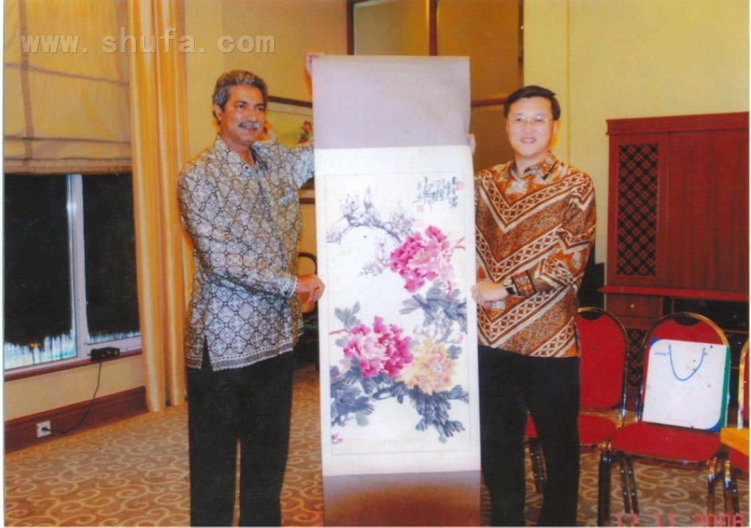 其作品被社会各界所广泛珍藏,并多次被各级领导作为礼品送给国外领导人以及国际友人,2006年11月17日,时任日照市市长杨军把连助先生的牡丹画作为礼品,送给了新加坡商务部部长。 (图为杨军市长与新加坡商务部部长合影) 吉连助书画网: http://jilianzhu.shufa.com/