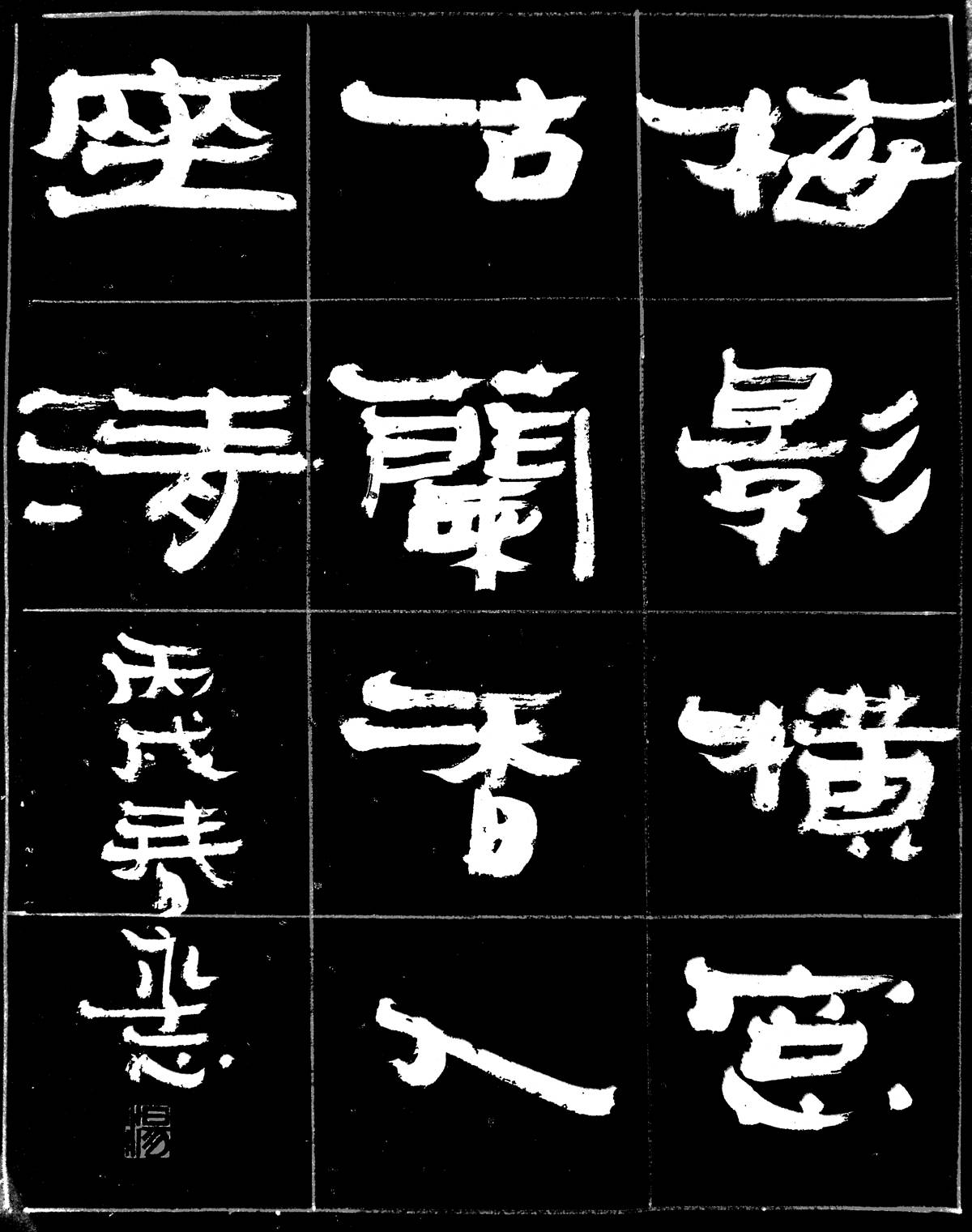 隶书作品《梅影横窗古 兰香入座清》