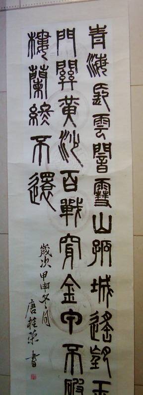 篆体书法七律一首 青海长云暗雪山,孤城遥望玉门关。黄沙百战穿金甲,不破楼兰终不还。