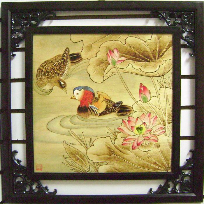烙画:又名烫画。初为烙花,后成烙画。其源于西汉,盛于东汉。期间几经衰落,后虽被清代艺人重新整理,形成以河南为主的烙画群体!现代烙画是利用加热300-800摄氏度的特制铁烙笔和利用220v的电烙铁通过碳化原理、控温技巧以及熟练的绘画技艺,在木板、宣纸、丝绢等材料上作画。画面呈茶褐色,古朴典雅,别具一格. 郑州碧波园珍宝大世界烙艺阁画廊主要经营木板烙画,烙画的花色品种丰富,山水、花鸟、人物、动物、肖像、书法、中国画、西洋画、卡通画、大中堂、小中堂、条屏、壁画以及数十米的长卷、制作招牌、各种艺术品装裱,题材广泛,应有尽有,可以根据顾客需要的图案尺寸定做!现在正在招收学员欢迎有兴趣的朋友加入!