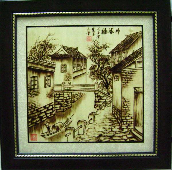烙画:又名烫画。初为烙花,后成烙画。其源于西汉,盛于东汉。期间几经衰落,后虽被清代艺人重新整理,形成以河南为主的烙画群体!现代烙画是利用加热300-800摄氏度的特制铁烙笔和利用220v的电烙铁通过碳化原理、控温技巧以及熟练的绘画技艺,在木板、宣纸、丝绢等材料上作画。画面呈茶褐色,古朴典雅,别具一格. 郑州碧波园珍宝大世界烙艺阁画廊主要经营木板烙画,烙画的花色品种丰富,山水、花鸟、人物、动物、肖像、书法、中国画、西洋画、卡通画、大中堂、小中堂、条屏、壁画以及数十米的长卷、制作招牌、各种艺术品装裱,题材广泛,应有尽有,可以根据顾客需要的图案尺寸定做!现在正在招收学员欢迎有兴趣的朋友加入!