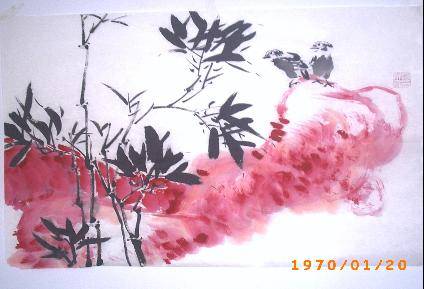 中国画写意花鸟竹子石头小鸟 价格:2800元