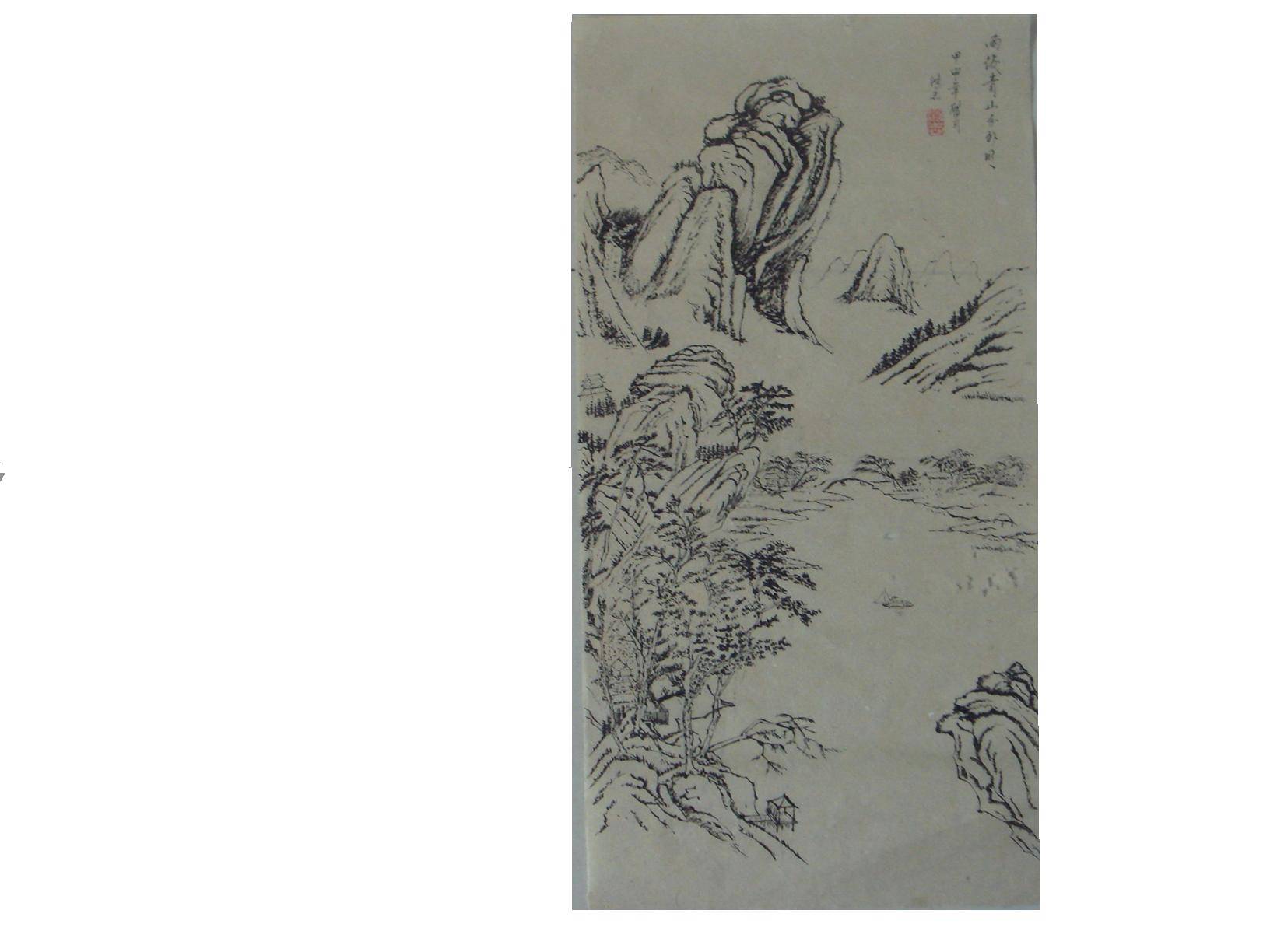 用钢笔画国画山水,是一次在没有毛笔的情况下,偶然试着画的,觉得还可以,有的还别有点儿韵味儿。只是用钢笔只能画点和线的画,要画笔墨晕染或泼墨的恐怕就不适合了。现传上几幅,请指正。