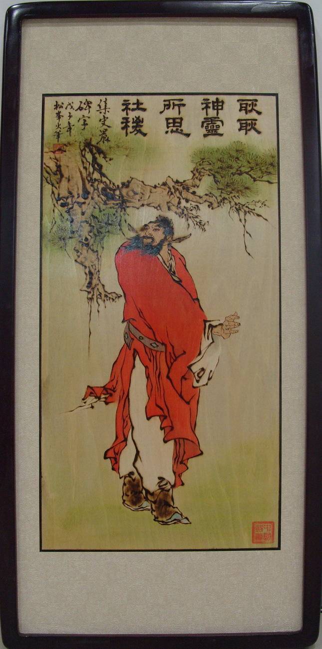 烙画:又名烫画。初为烙花,后成烙画。其源于西汉,盛于东汉。期间几经衰落,后虽被清代艺人重新整理,形成以河南为主的烙画群体!现代烙画是利用加热300-800摄氏度的特制铁烙笔和利用220v的电烙铁通过碳化原理、控温技巧以及熟练的绘画技艺,在木板、宣纸、丝绢等材料上作画。画面呈茶褐色,古朴典雅,别具一格.