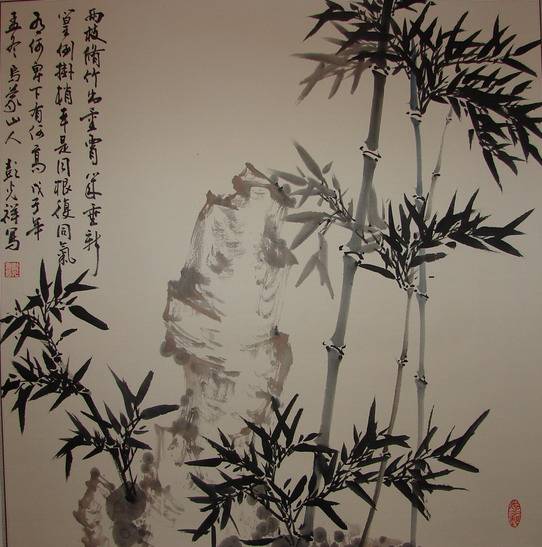 花中四君子之---竹,用笔遒劲,构图取法潘天寿.画风得于郑板桥.体现了画家扎实的传统功底.