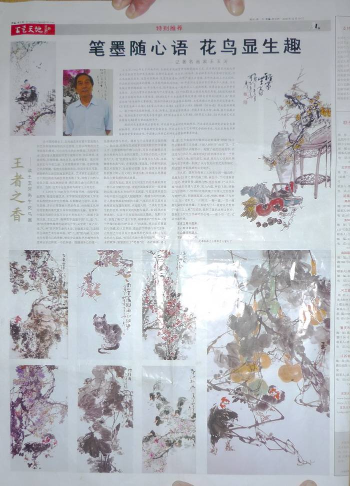 王玉河1942年生于河南开封。88年在河北省省会石家庄举办个人画展,河北电视台曾专题报道。95年与朱介夫、张辛国先生一起举办三人国画联展,深得省会美术界赞赏与关注。其作品曾多次参加国内外大型美展。《大千红霞》获山西省美展优秀奖,《南国风韵》获炎黄子孙国际书画大赛银奖。《秋韵》获中日书画邀请展优秀奖,《香自苦寒来》获第三届《唐诗宋词颂》诗书画印大赛银奖。国画作品被《中国画精品集萃》、名家画梅兰竹菊牡丹荷花等套书、《名家花鸟画小品集》、《名家山水画小品集》、《名家画山水》、《梅谱》、《回归颂》等大型画册载入。数十幅作品赴新加坡、日本、加拿大、菲律宾等国展出,并被多家美术馆、画廊、报刊收藏出版。简历收录于《中国美术家年鉴》、《中国书画家名人字典》、世界名人录》、《当代书画艺术名家精英大典》等大型权威辞书中。