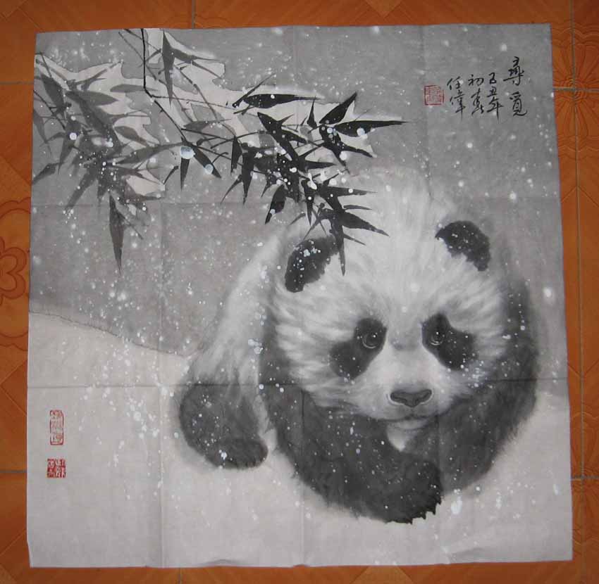 任伟:中国美协会员,四川资阳市美协主席,中国熊猫画第一人,填补此类题材的空白..作品清纯空灵归自然,黑白分明看世界. 此作品对外出售,联系电话:15556390198