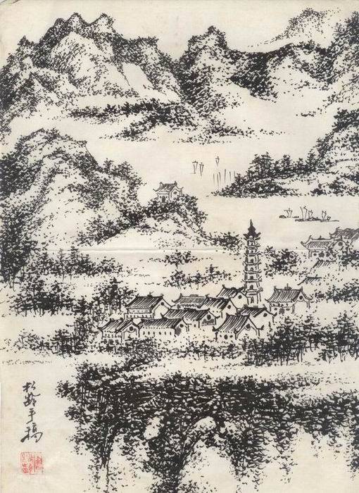 钢笔山水画——2