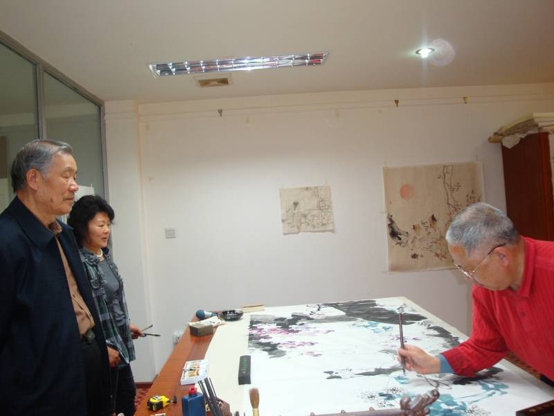 画家齐辛民.贾世玉.吴东奋在博雅斋作画