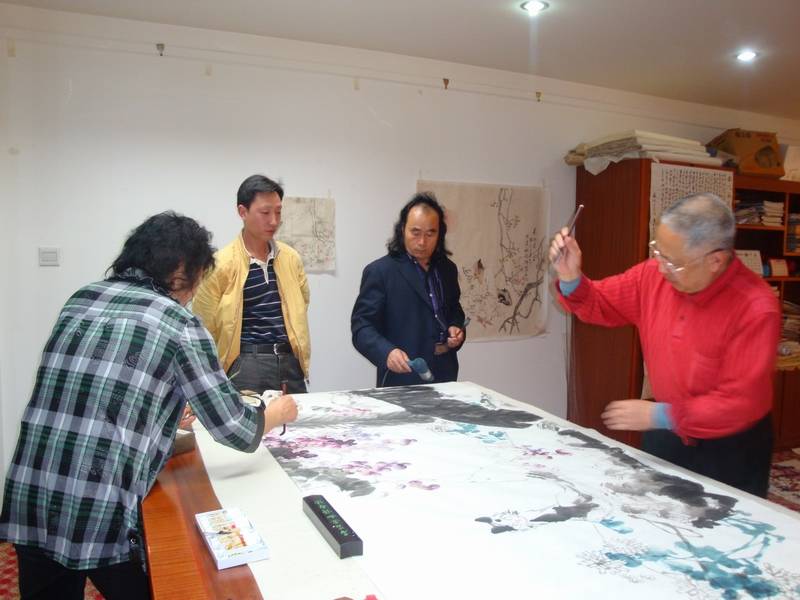画家吴东奋.颜泉.贾世玉在博雅斋作画