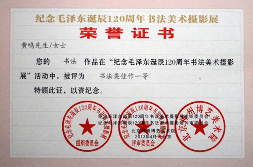 黄鸣证书