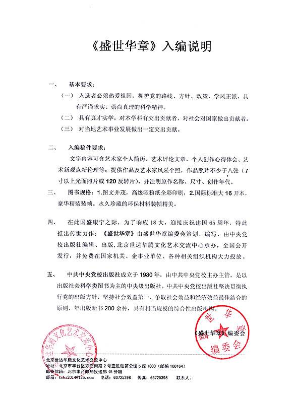书画艺术《盛世华章》编委会约稿函