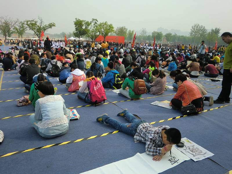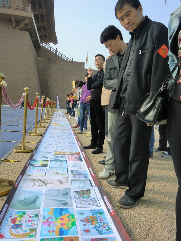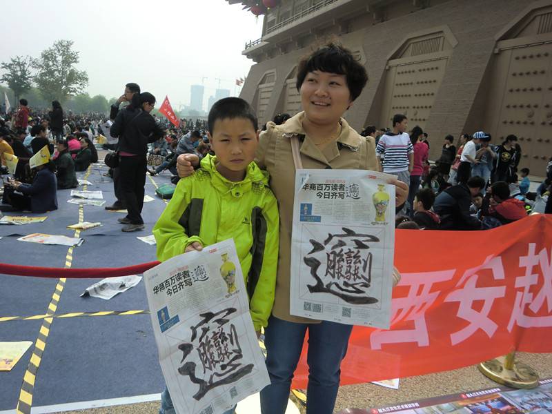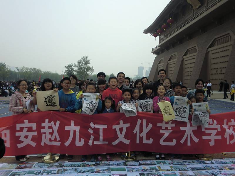 4月13日上午,“华商百万人齐写biang字”活动在大明宫国家遗址公园上演。现场聚集各大型品牌企业、市民大众、学生团体,气氛如火如荼。西安赵九江文化艺术培训中心作为品牌特色单位受邀参加。