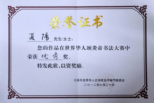 夏阳证书