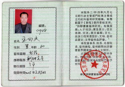 王曰夫证书