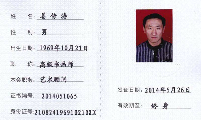 姜传涛润格证书等