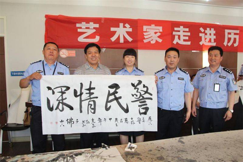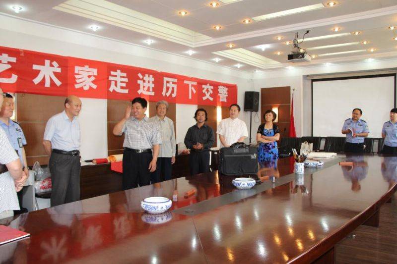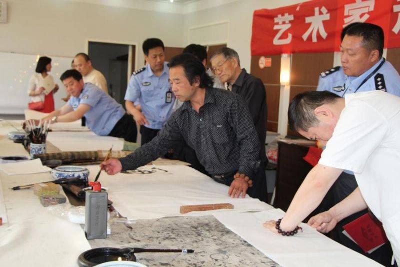 到历下区交警大队慰问一线交警,现场为交警创作书画作品近50幅,,参加慰问活动的著名书画家有王东华、